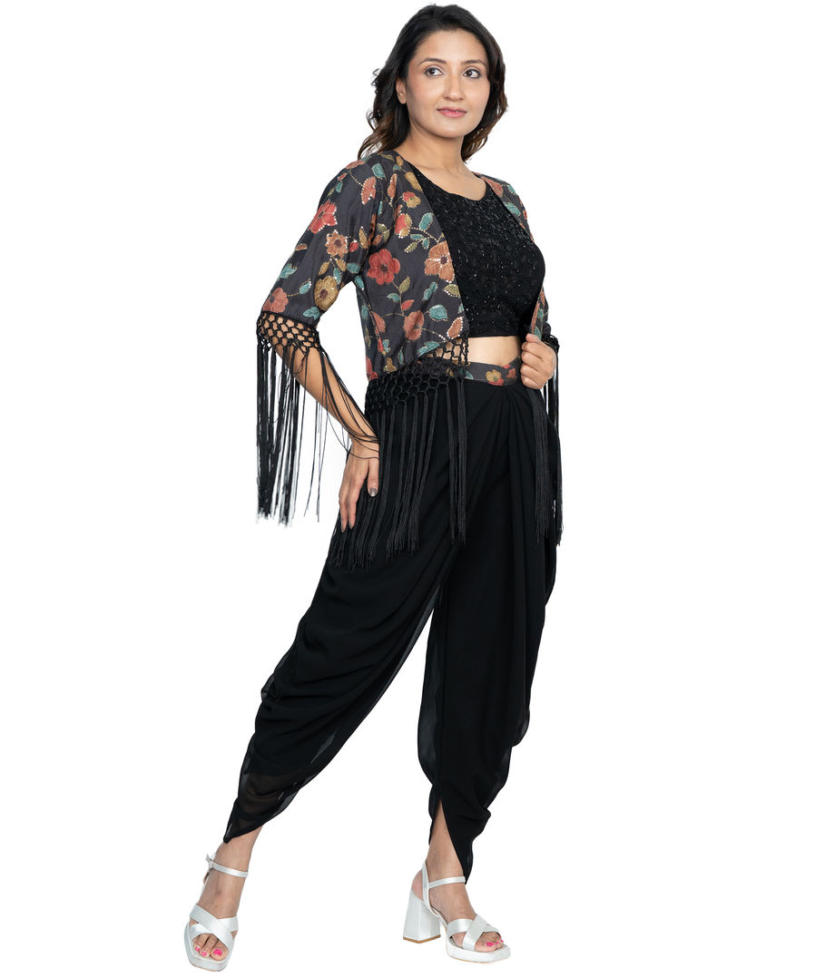 AkVogue Black Indo Western Dhoti Salwaar Set with Jacket for Women