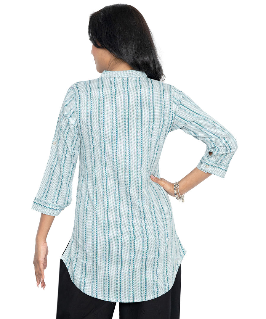 AkVogue Blue Striped Casual Daily Wear ShortKurta Tunic for Girls & Women