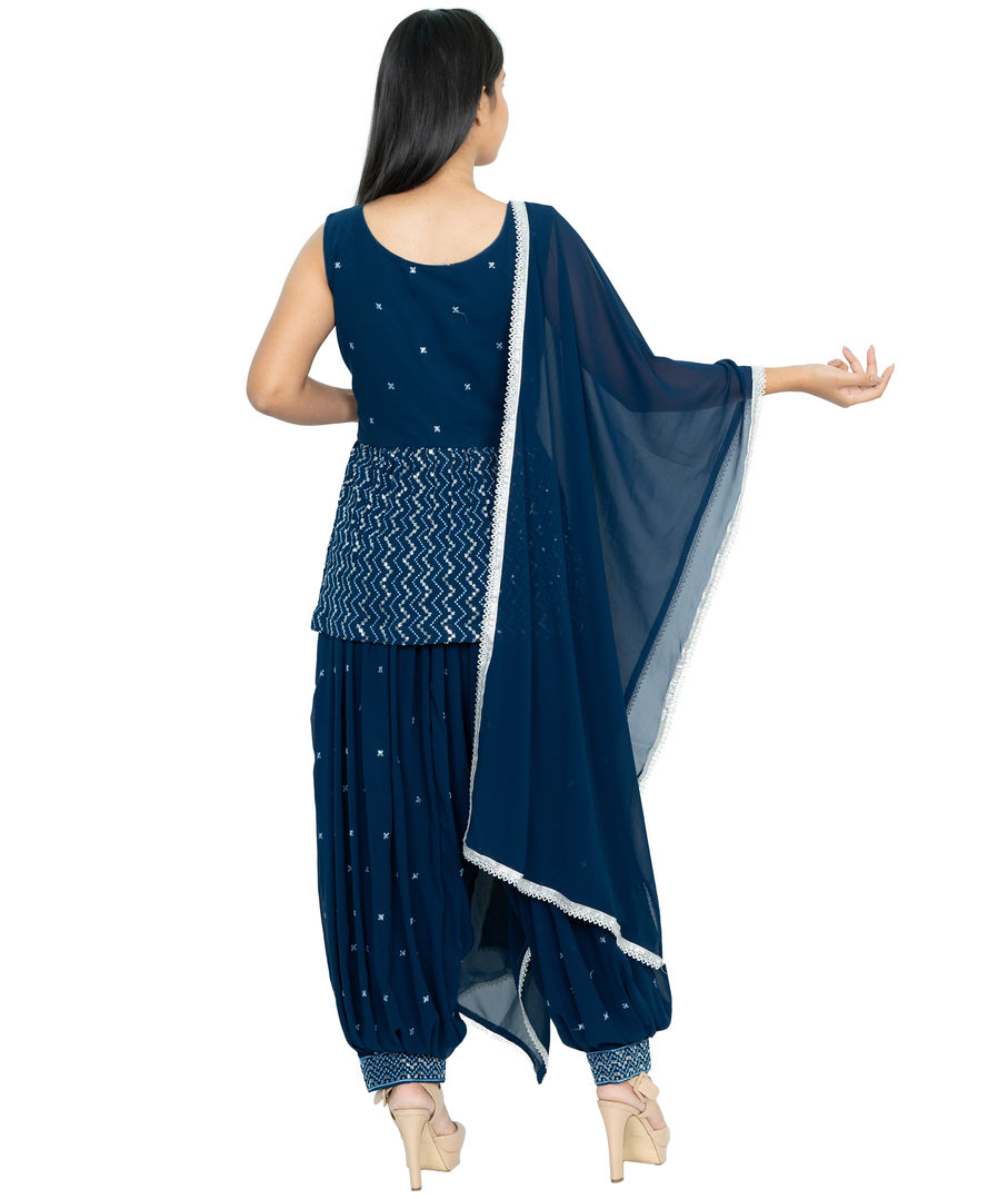 AkVogue Blue Traditional Short Shirt with Afghani Salwar Party Wear Ladies Suit