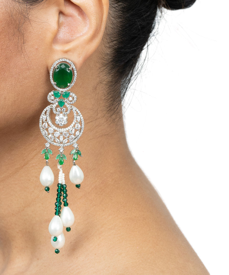 AkVogue Designer Green and White Beads Necklace with Long Dangler Earrings