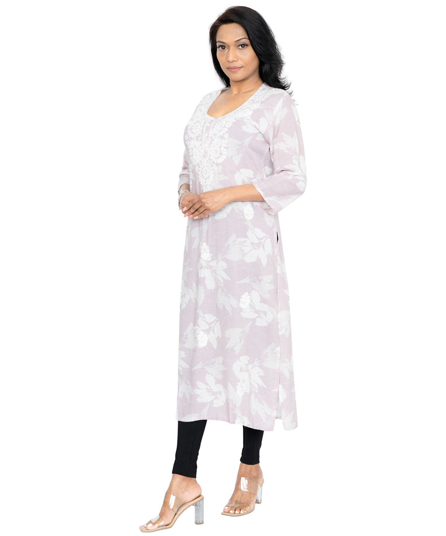 AkVogue Embroidered Purple Long Daily Wear Cotton Long Kurta