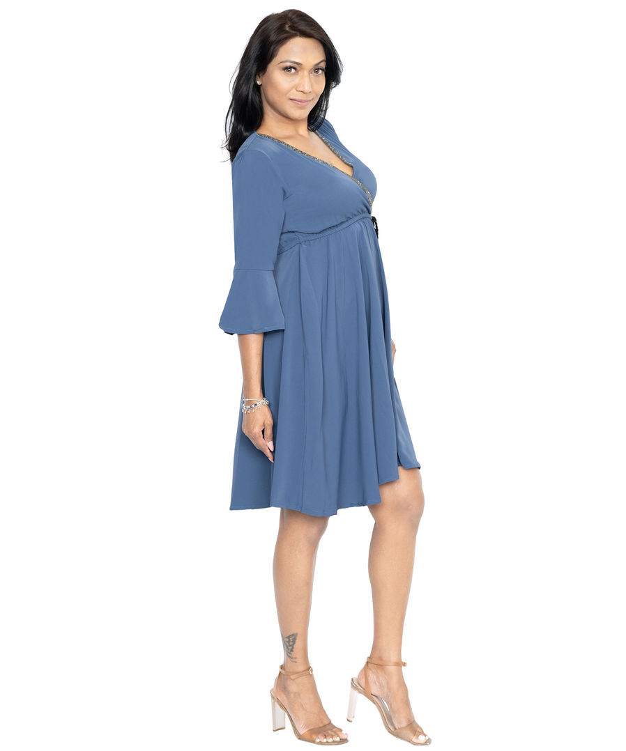 - Style: Plain | Pattern: Solid | Fit: Relaxed Fit | Length: Knee-Length | Neck: V Neck | Sleeves: 3/4 th Sleeves | Contains an elastic band at the waist