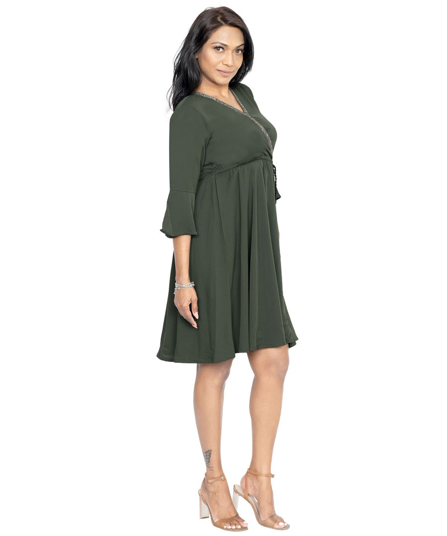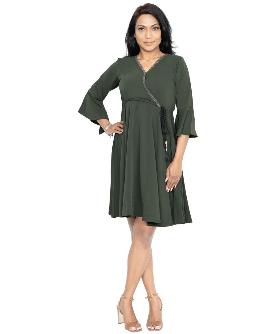 AkVogue Formal Olive Green Party Ladies Dress with Drawstring