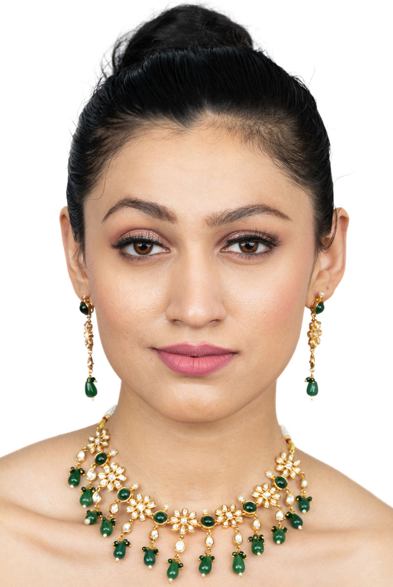 AkVogue Green Emerald Drops and Kundan Stones Jewelery Set for Wedding