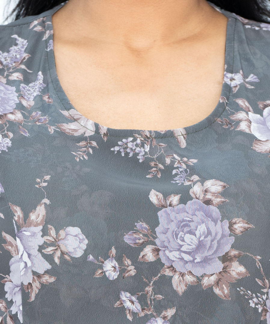 - Style: Pleated Flare | Pattern: Floral Print | Fit: Relaxed Fit | Length: Ankle-Length | Neck: Round Neck | Sleeves: Sleeveless (extra sleeves cloth attached) | Contains an elastic band at the waist