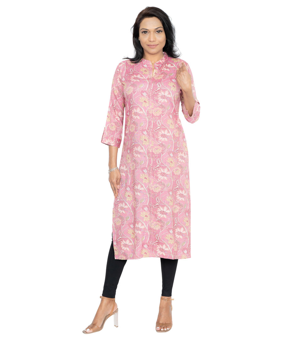 AkVogue Pink Straight Cotton Ladies Kurta for Office and Daily Wear Kurti