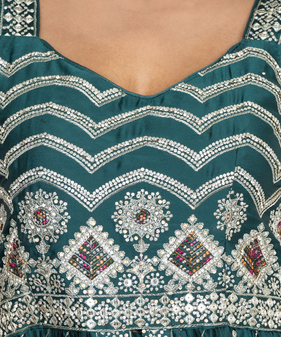 - Measurements: Sharara (Stitched) waist - 24" , height- 39"; Blouse Size: Chest: 38" (can be altered for more 1") on both sides ( padded blouse , removable)