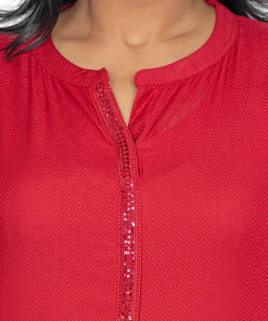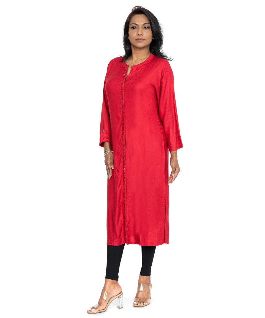 AkVogue Red Formal Party Wear Cotton Straight Kurta for Women