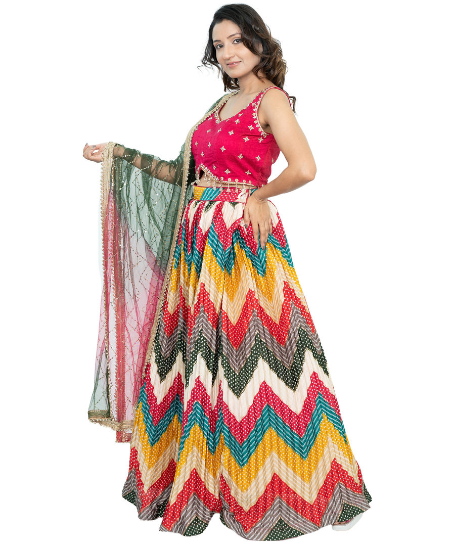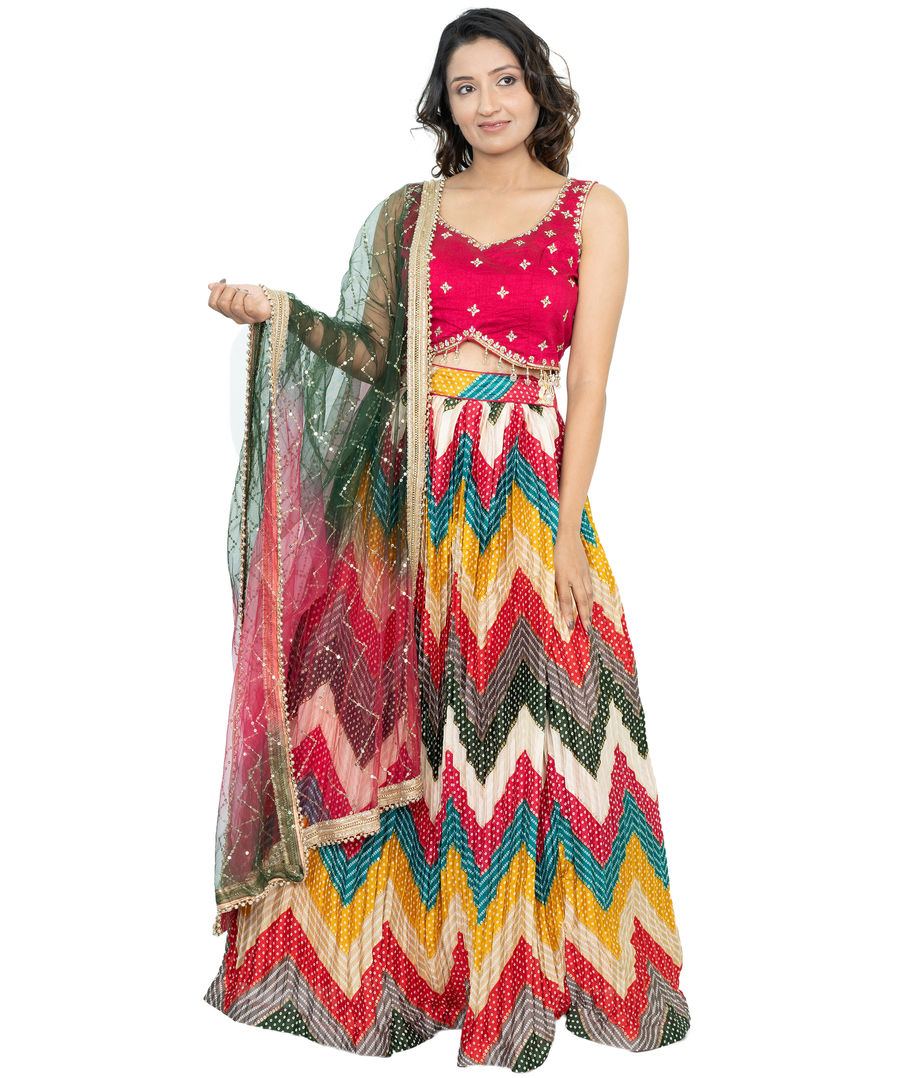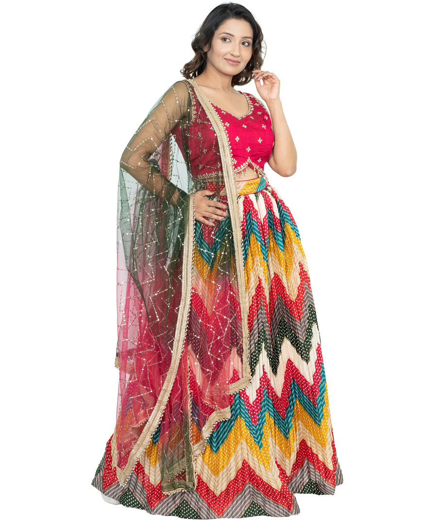 AkVogue Traditional Readymade Red Choli and Multicolour Lehenga