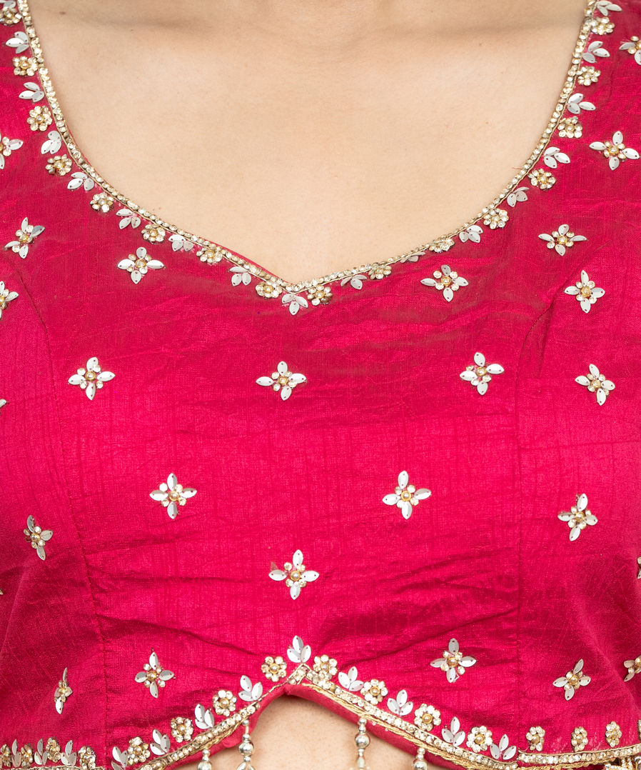 - Lehenga Work: Sequin work; Blouse Work: Thread and Mirror Embroidery work; Dupatta Work: Lace at the borders and Sequin Work