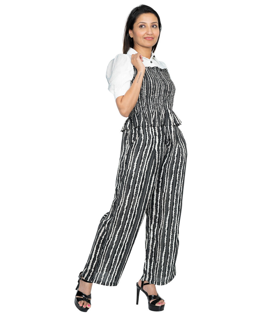 AkVogue White-Black Striped Office Wear Cord Set for Women