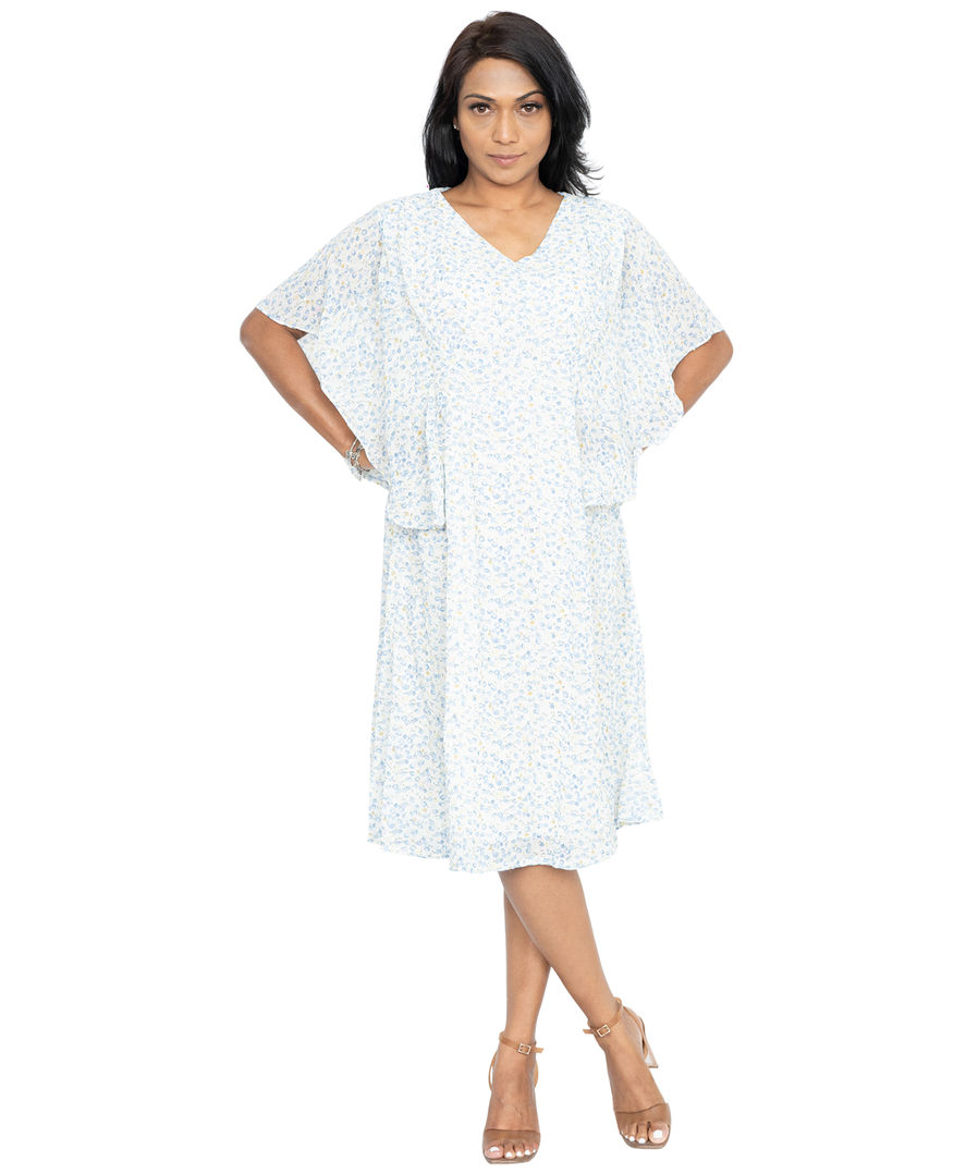 Fabric: Chiffon Polyster Blend | Care Label: Hand Wash Thoroughly In Warm Water, Do Not Bleach, Soak Or Wring, Drip Dry Away From Direct Heat, Warm Iron Only, Dry Cleanable, Wash Light & Dark Colors Separately Style: Floral Printed | Pattern: Solid | Fit: Relaxed Fit | Length: Below Knee-Length | Neck: V Neck | Sleeves: Flare Sleeve Before order, please carefully read the Size Chart provided in the pictures, select the size according to it. Size M � chest : 36� and flare fit