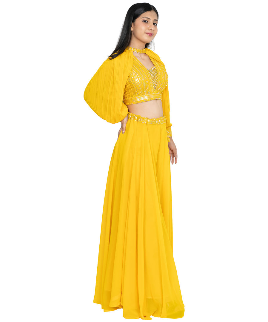 AkVogue Yellow Party Wear Sharara and Choli Set with Separate Sleeves and